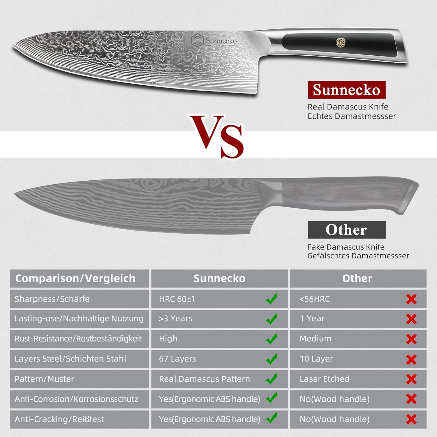 Blade Material: VG10 Steel Core & 67-layer Real Damascus Layered Steel