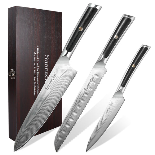 【Elite G Series】3 Piece Knife Set 8" Chef Knife 8" Serrated Bread Knife 5 Inch Utility Knife VG10 Damascus