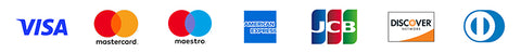 Visa, Mastercard, Maestro, American Express, JCB, Discover, Diners Club.