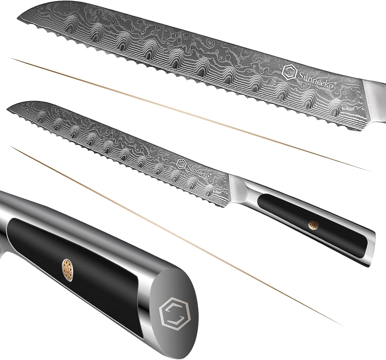 【Elite A Series】Sunnecko 8" Pointed Serrated Knife for Slicing Sourdough Bread Loaf Brisket VG10 Damascus